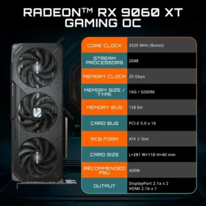 Radeon RX 9060 XT Gaming OC 16G Graphics Card, PCIe 5.0, 16GB GDDR6, GV-R9060XTGAMING OC-16GD Video Card