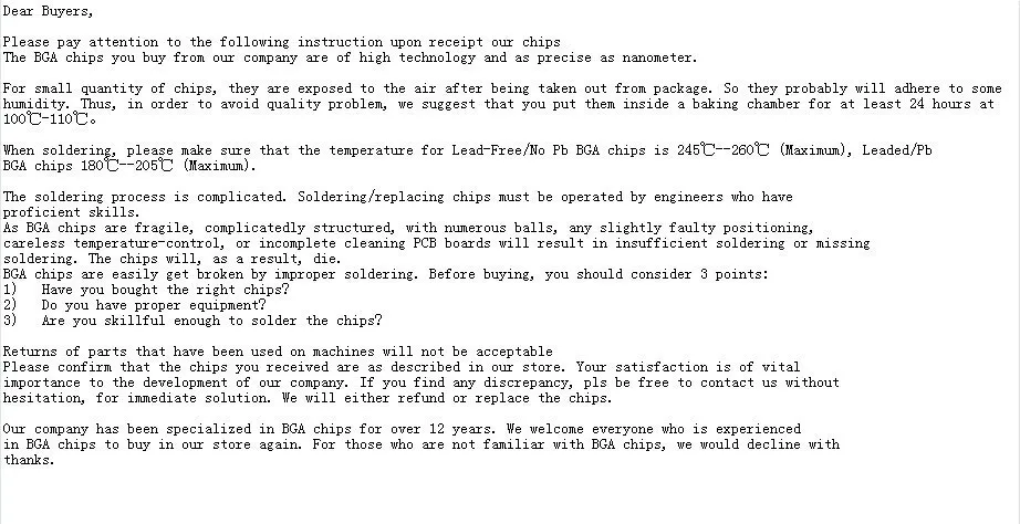 Thank you for your visit, and you are welcome to come and consult our company's independent website:http://www.fkhc-chips.com/