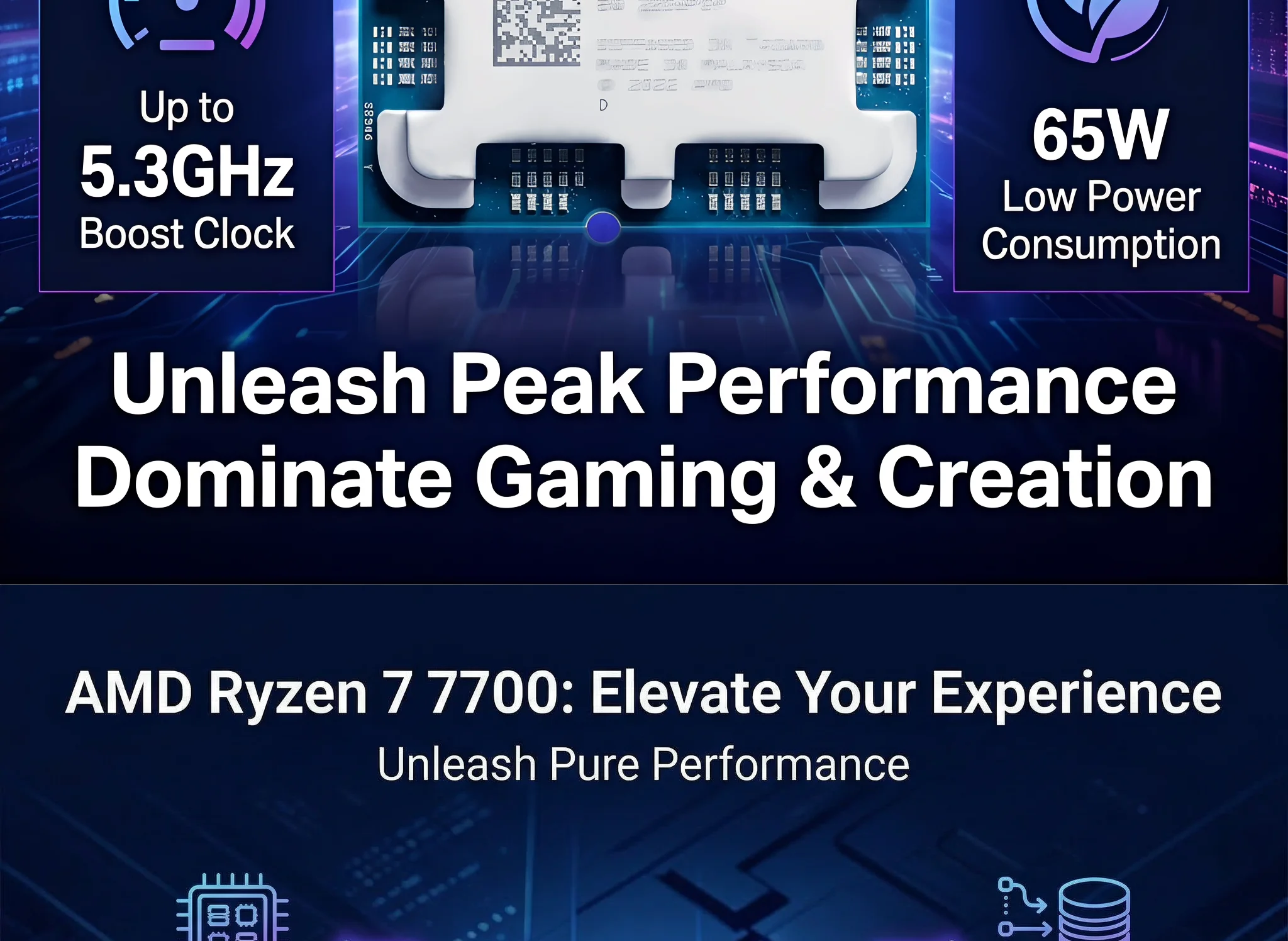 The AMD Ryzen 7 7700 is a mid to high end desktop CPU based on the Zen 4 architecture (Raphael), featuring 8-core 16 thread, 5.3GHz high frequency, and 65W low power consumption. It is a versatile choice for the AM5 platform that balances performance and energy efficiency.