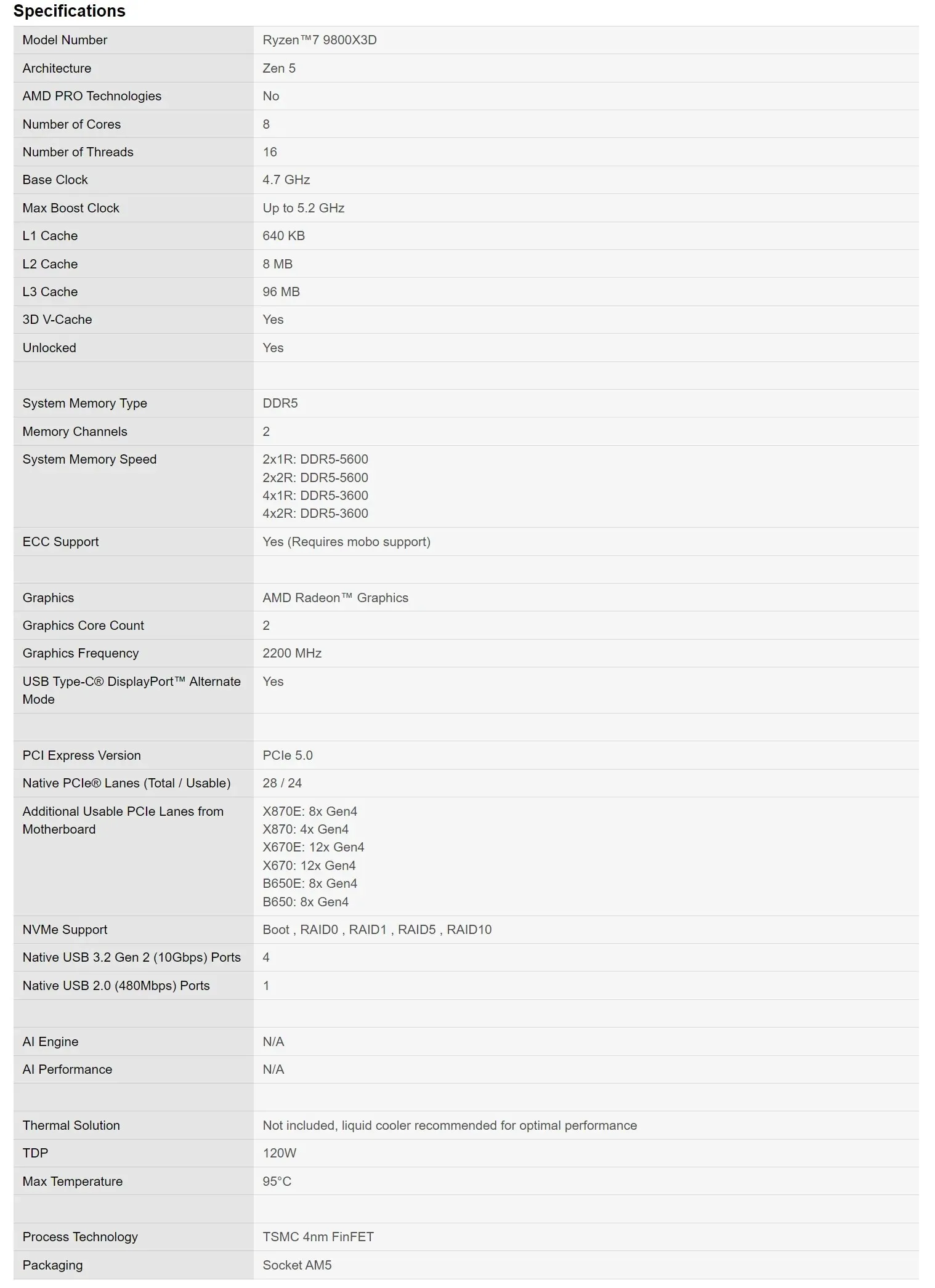 AMD Model: AMD Ryzen 7 9800X3D