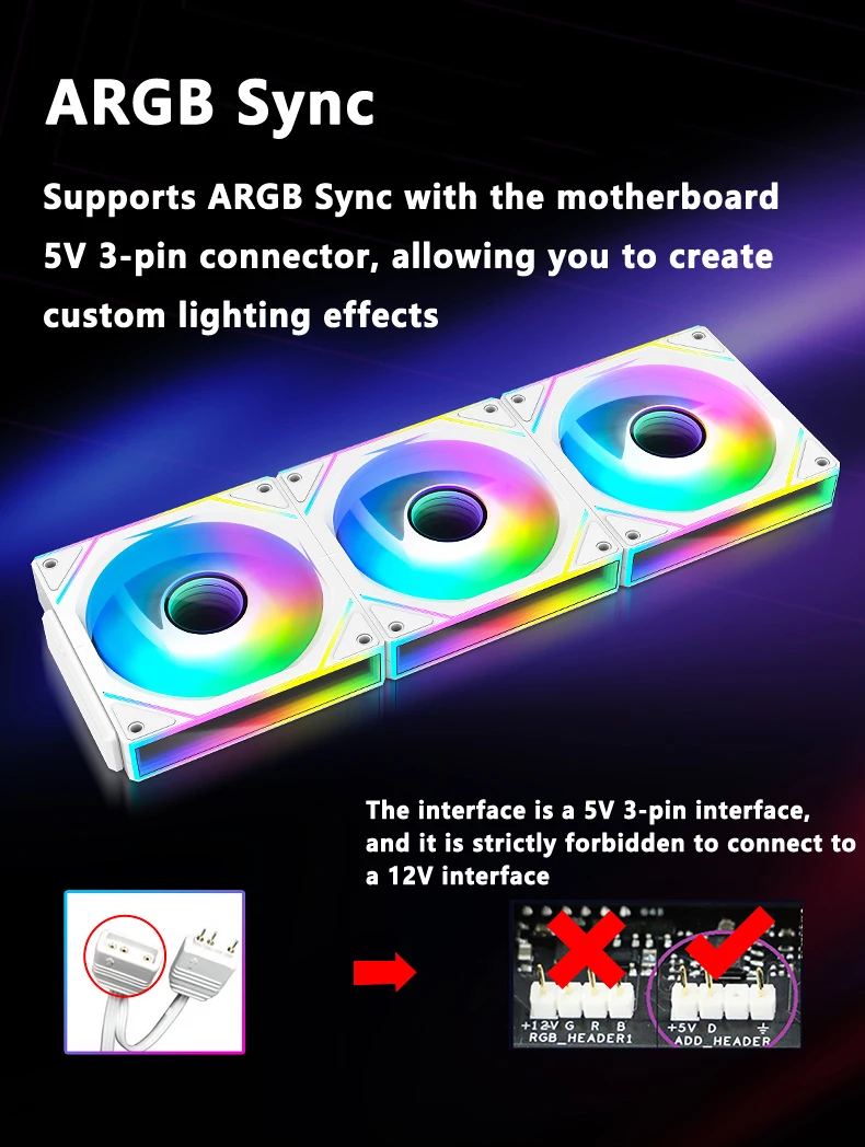 2.If the motherboard supports the 5V 3-pin ARGB interface, you do not need to use an ARGB controller. You can connect it directly to the motherboard. If it does not support it, a separate fan cannot be used and must be used with an ARGB controller.